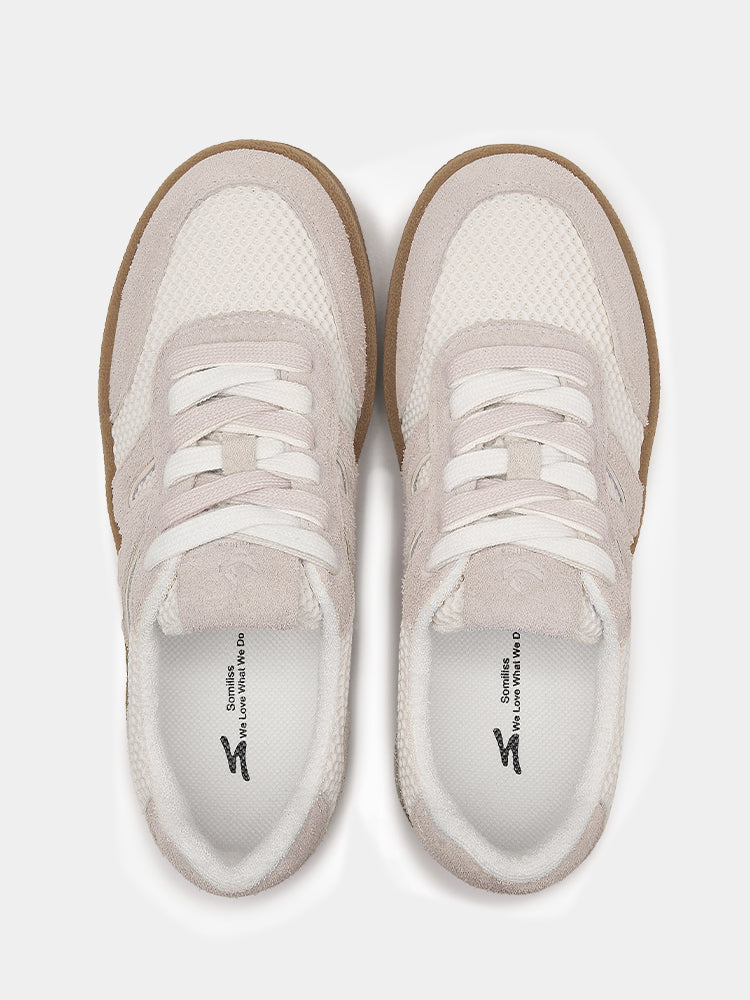 Comfort Fashion Women's Skate Shoes White Mesh Grey Suede