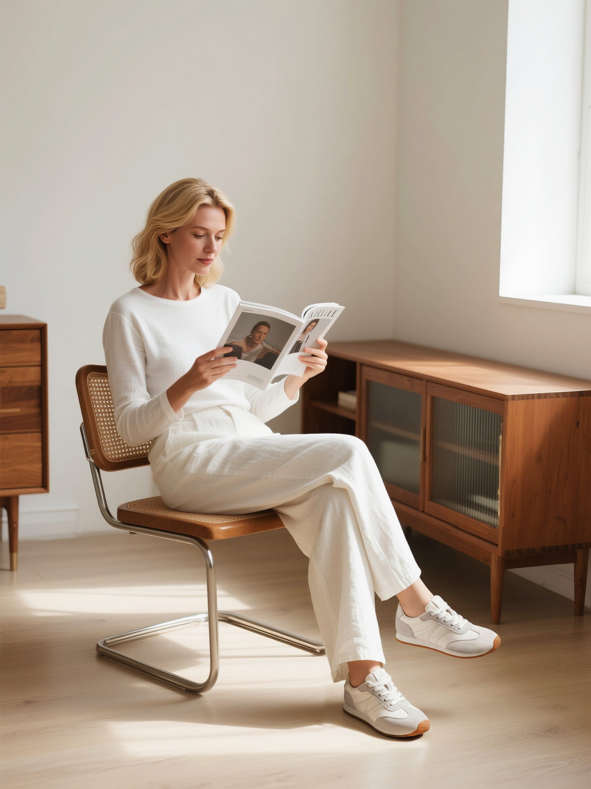 Retro Wide-Toe Sneakers with Embroidered White/Grey